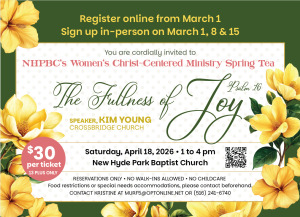Check your email for notices to NHPBC Google Group for the latest communications from our pastors and elders. For anyone who would like to be included in our google group, send your request to pastormcmasters@gmail.com. Be sure to include your name and how you are related to the church (member, regular attender, interested in visiting, friend, family of member or regular attender).